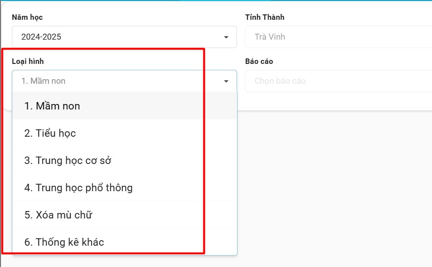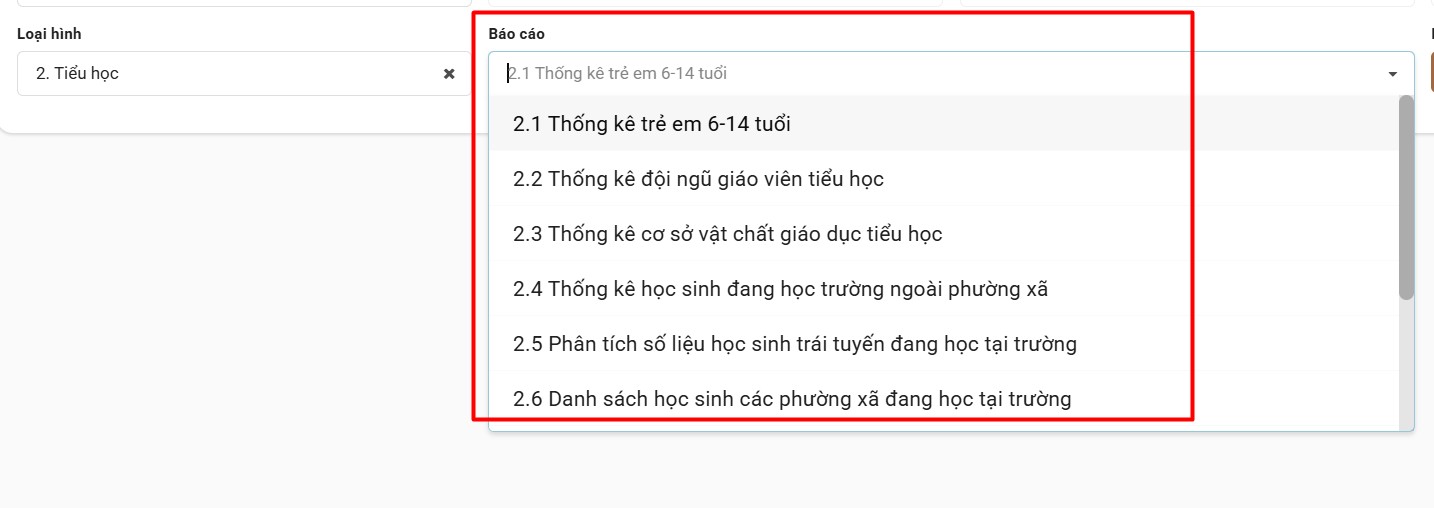 Bước 3: Chọn thống kê, báo cáo cần xem