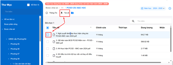 Bước 5: Nếu muốn tải tài liệu trực tiếp từ tủ hồ sơ thì check chọn rồi bấm tải về.