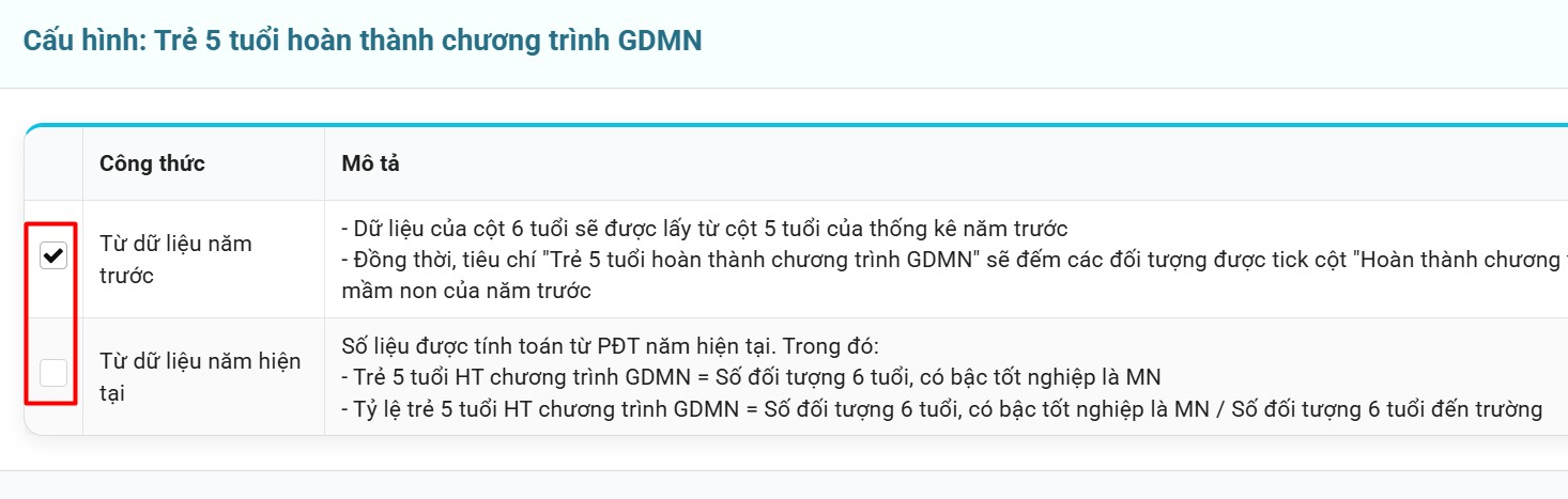 - Khi tùy chỉnh công thức thống kê xong thì tất cả đơn vị cấp dưới sẽ áp dụng theo công thức này.