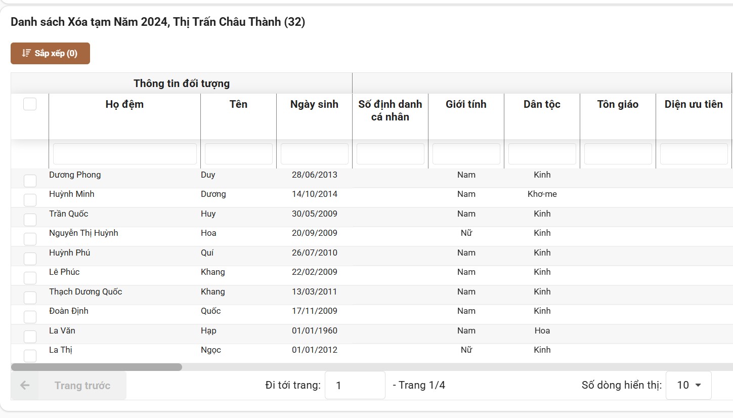 Bước 3: Nếu muốn khôi phục lại đối tượng xóa tạm thì Thầy/Cô bấm vào ô vuông trước cột “Họ đệm” sau đó bấm nút Bỏ xóa tạm . Đối tượng này sẽ trở về Danh sách phiếu điều tra và Danh sách đối tượng điều tra.