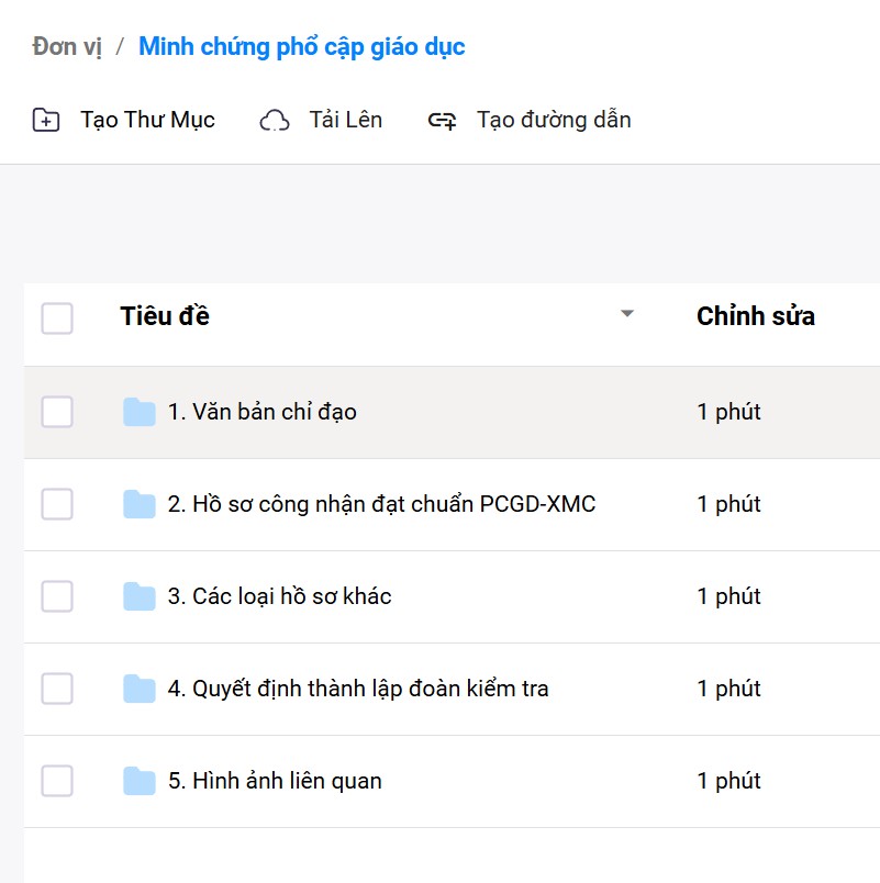 Lưu ý: Đơn vị được chia sẻ thư mục sẽ thấy các file trong thư mục, chỉ xem không có quyền xóa, thêm, chinh sửa