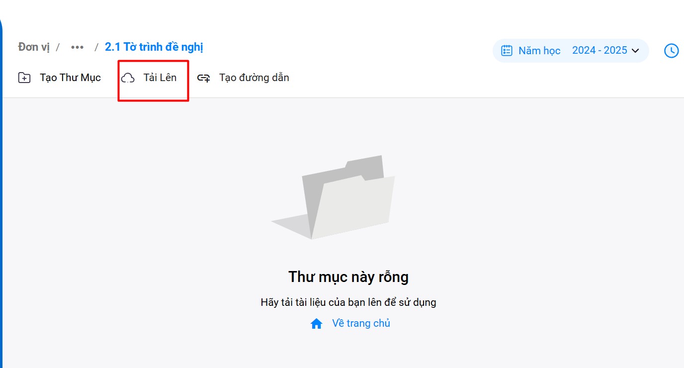 Bước 4: Bấm nút Tải lên để đưa file vào thư mục tương ứng