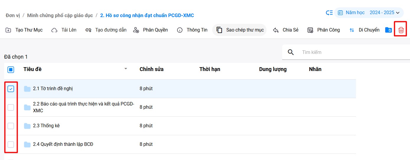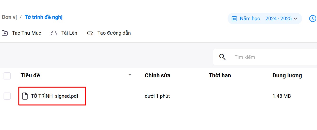 - Vĩnh viễn: Các file được tải lên trong thư mục này sẽ được lưu ở tất cả các năm. Ví dụ, file được tải lên ở năm 2023-2024, thì sang năm 2024-2025 vẫn sẽ xuất hiện file này.