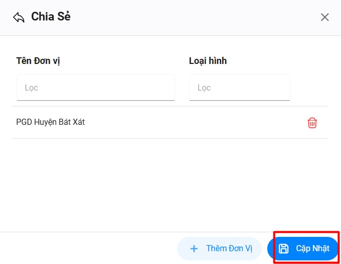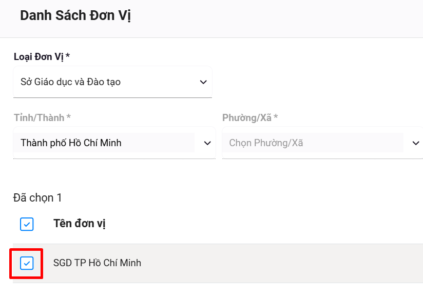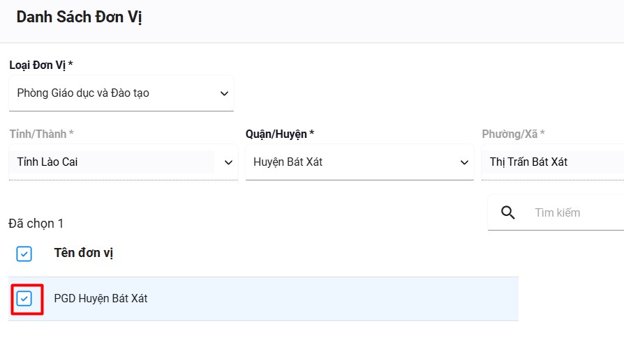 Bước 3: Check chọn đơn vị để chia sẻ.