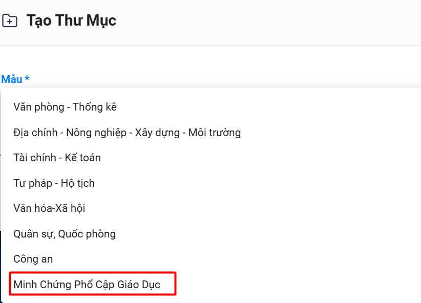 - Chọn loại thư mục cần lấy mẫu là Minh chứng phổ cập
