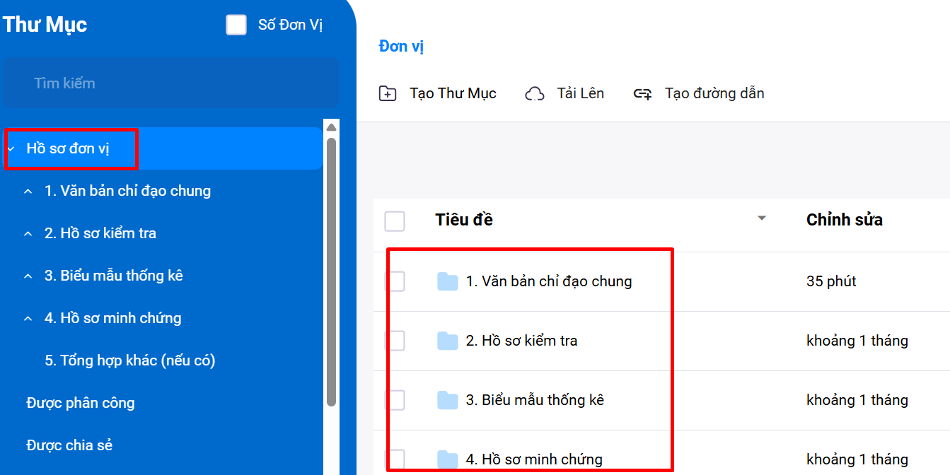 Mục đích: Những hồ sơ đang lưu trong “Hồ sơ đơn vị” cần được chia sẻ cho cấp trên để có thể kiểm tra trực tuyến