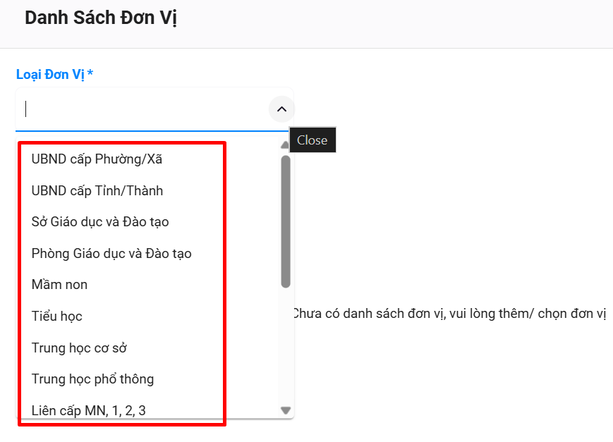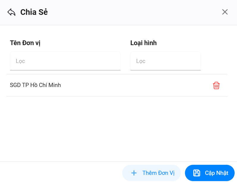 Bước 3: Chọn loại đơn vị muốn chia sẻ.