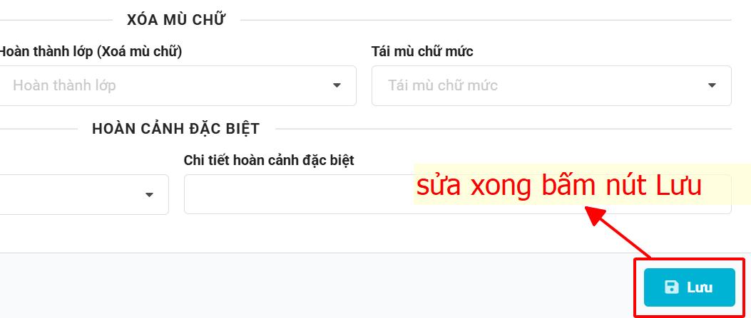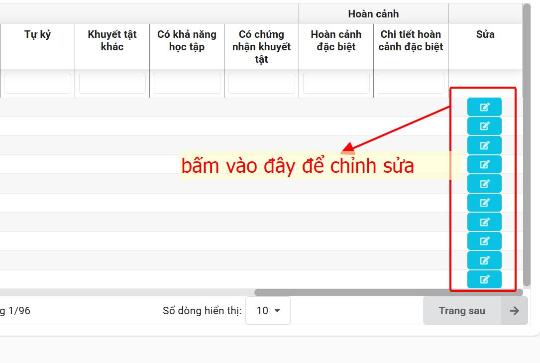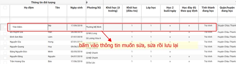 - Chỉnh sửa thông tin học sinh trái tuyến đến