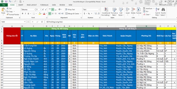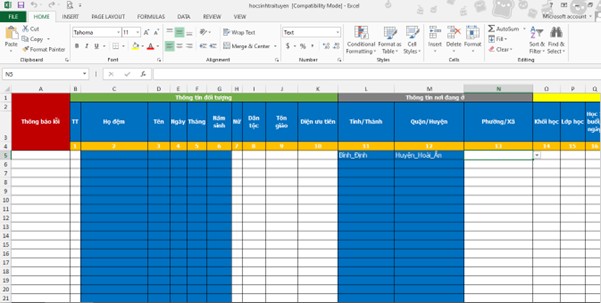 Bước 3: Nhập danh sách đối tượng trái tuyến vào file. Ngoài ra, Thầy/Cô cũng có thể copy từ file khác dán vào (khi dán chọn Paste Special -> Values để giữ định dạng của file mẫu).