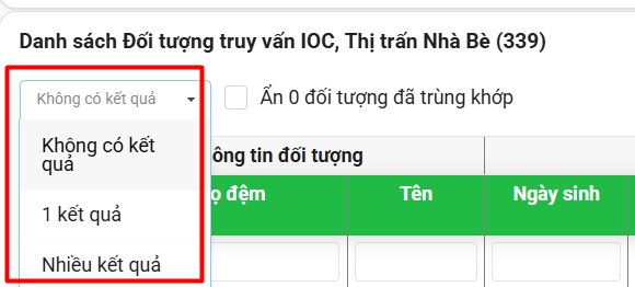 - Không có kết quả: đối tượng điều tra khi truy vấn không có đối tượng trùng khớp.