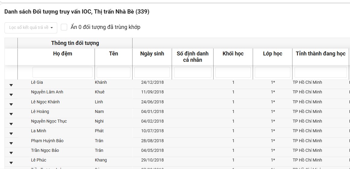 Mục đích: Tính năng giúp Thầy/Cô truy vấn, so dò đối tượng điều tra với dữ liệu học sinh trên cơ sở dữ liệu ngành theo các tiêu chí tùy chọn.