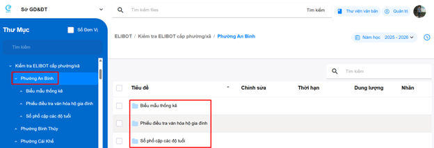 Các tài liệu phường xã ký số từ phần mềm phổ cập ELIBOT sẽ được lưu tại đây bao gồm: